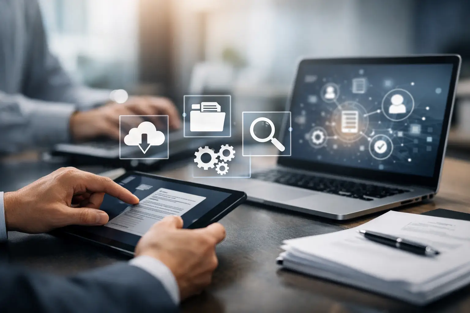 Im Finanzbereich liegen die Potenziale meist in der Eingangsrechnungsverarbeitung, bei Prüf- und Freigabestrecken sowie bei der revisionssicheren Ablage. In HR geht es häufig um digitale Personalakten, Vertragsdokumente, Onboarding-Unterlagen und standardisierte Freigaben. Im Vertrieb und Service sind Angebots-, Vertrags- und Kundenakten relevant, vor allem wenn verschiedene Teams parallel auf dieselben Informationen zugreifen müssen.